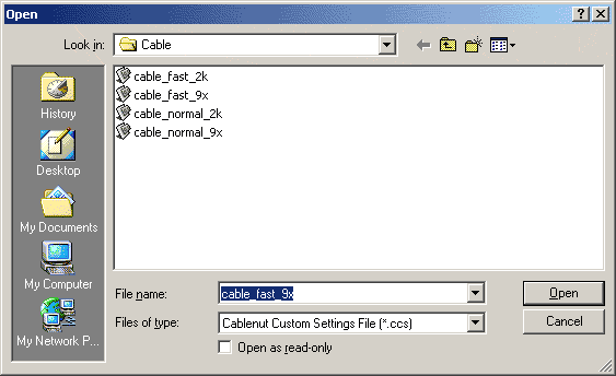 CableNut is a tool for optimizing your Internet Connection. We have provided a way to tweak almost every possible TCP/IP registry entry via the CableNut program. You can load ‘CableNut Custom Setting’ files that are included with the program to tweak your Internet connection. You can make your own ‘CableNut Custom Setting’ files save them for later use, or distribute them to anyone with the CableNut program. Cable, DSL, Satellite, and Dialup connections are supported out of the box.